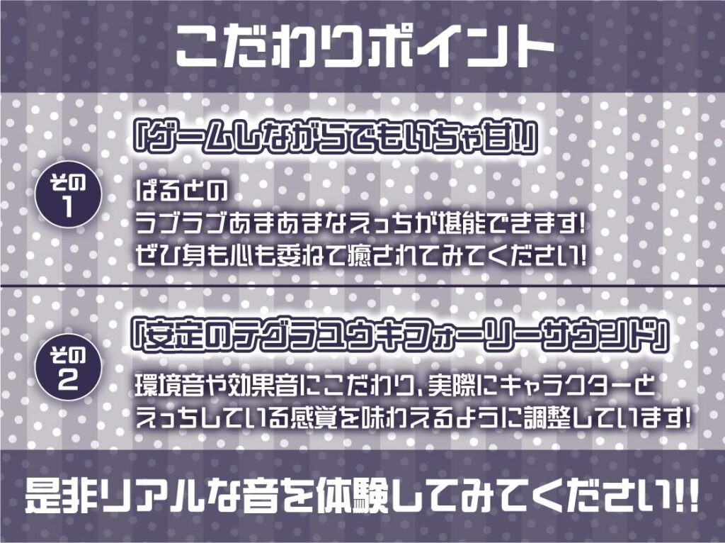 【いちゃ甘】ゲーマーJKぱるのゲームしながらいちゃ甘えっちプレイ:RJ01477911 テグラユウキ