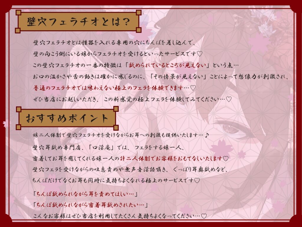 【全編ぐっぽり口内射精&フェラ特化】壁穴フェラチオ専門風俗「口淫庵」へようこそ~フェラチオに特化したドスケベ嬢×2による極上お口まんこサービス~:RJ01504968 J〇ほんぽ