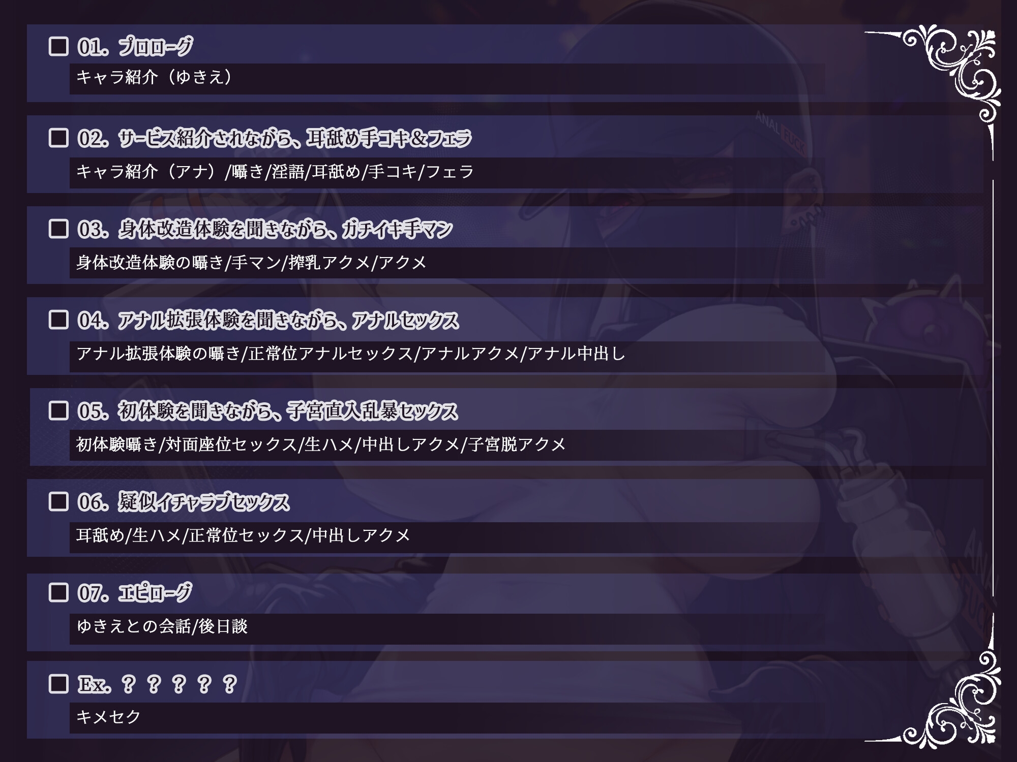 ■02. サービス紹介されながら、耳舐め手コキ&フェラ (キャラ紹介(アナ)/囁き/淫語/耳舐め/手コキ/フェラ)