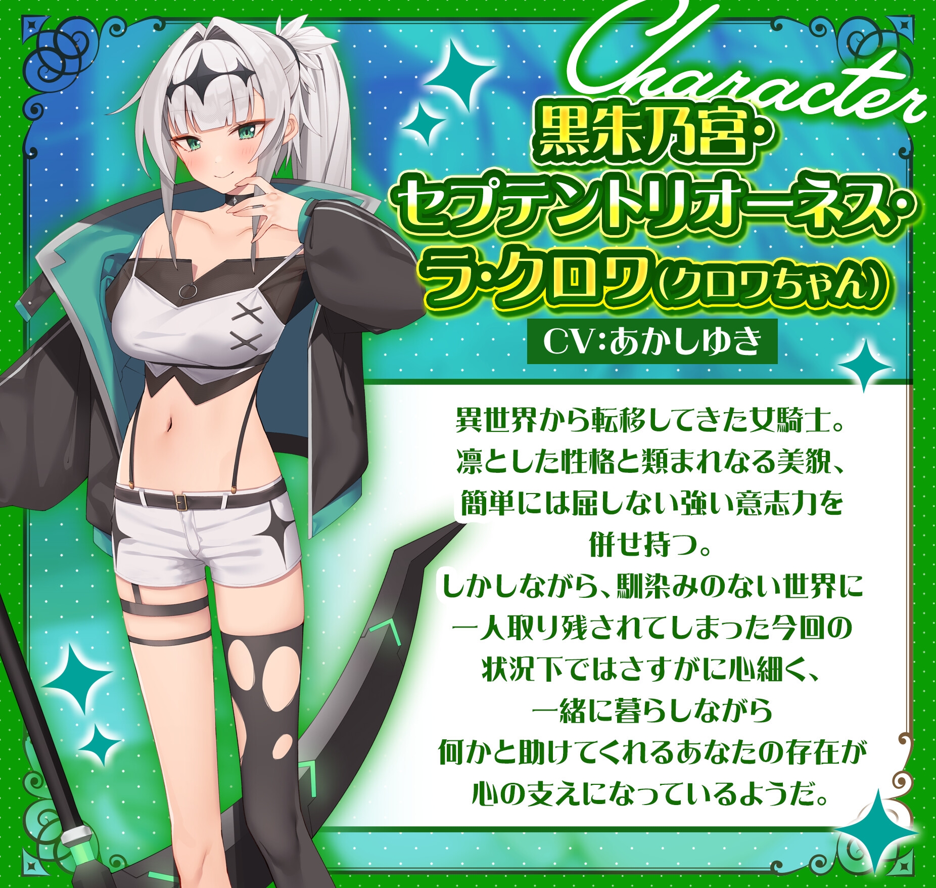 本作品主演キャラの「クロワちゃん(黒朱乃宮・セプテントリオーネス・ラ・クロワ)」は、バーチャルアイドル的なキャラクターとして、毎日動画投稿やX(旧twitter)上での企画など、日々活動を続けています。