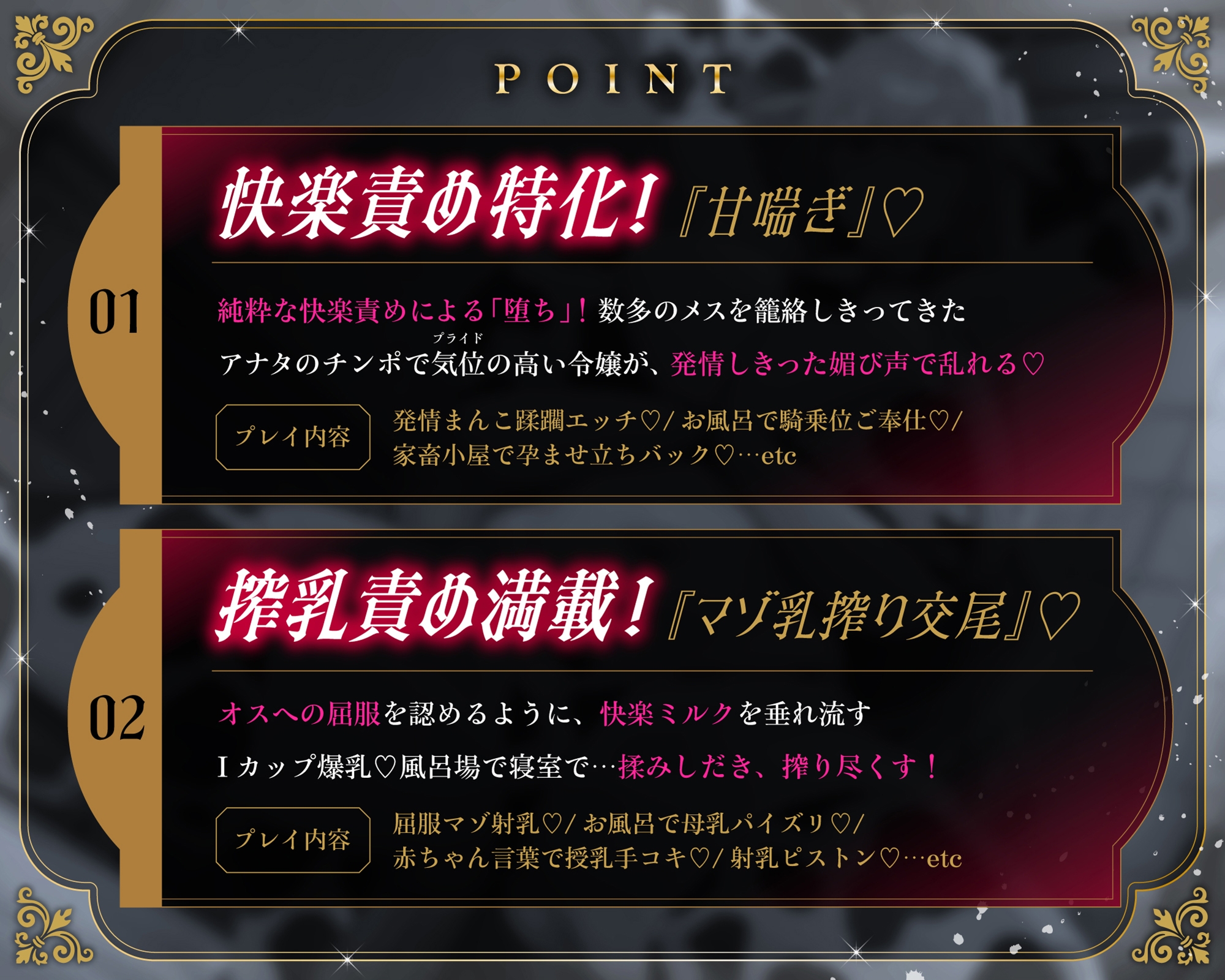 ✅POINT 快楽責め特化‼️生意気な令嬢が『マゾ乳絞り交尾』でミルクを絞られ、オスに媚びきった『甘喘ぎ』で乱れまくる♡✅