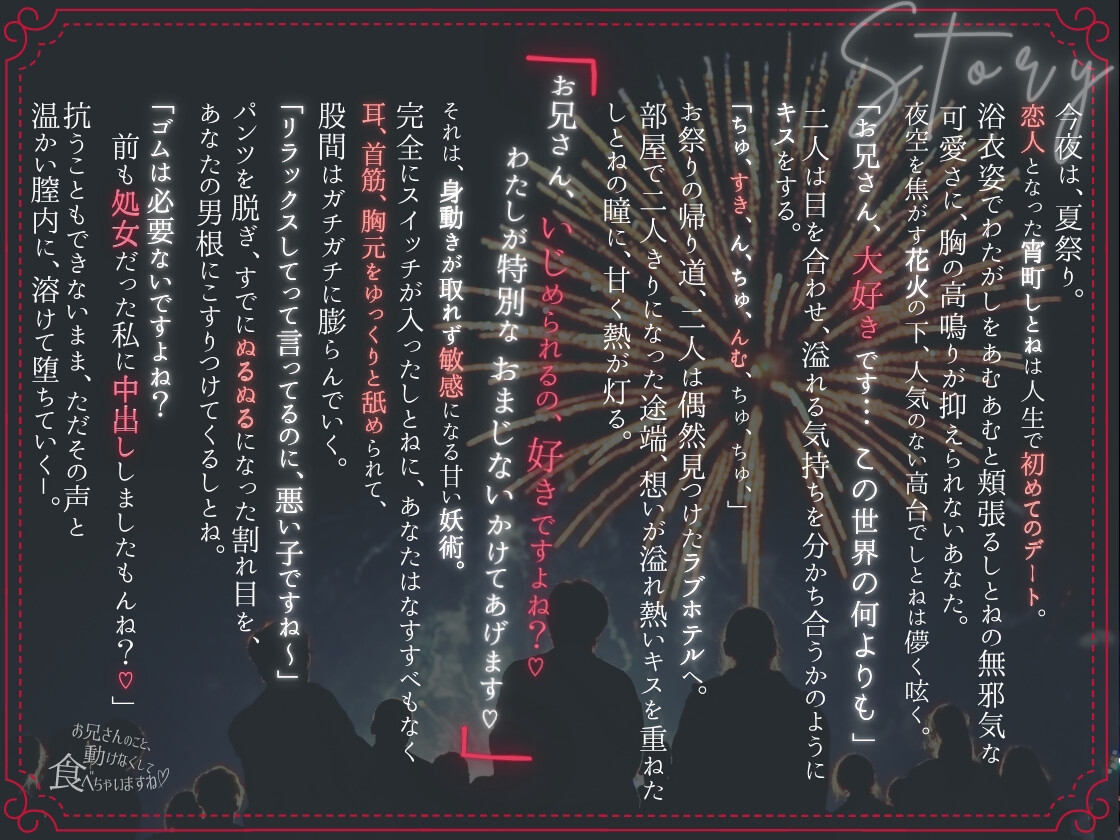 「お兄さんのこと、動けなくして、食べちゃいますね♡ 〜初めてのデートで甘サド覚醒した年下狐娘(こむすめ)にえっちなイタズラでとろとろ吐精させられる夜〜」RJ01497013のハイライト画像