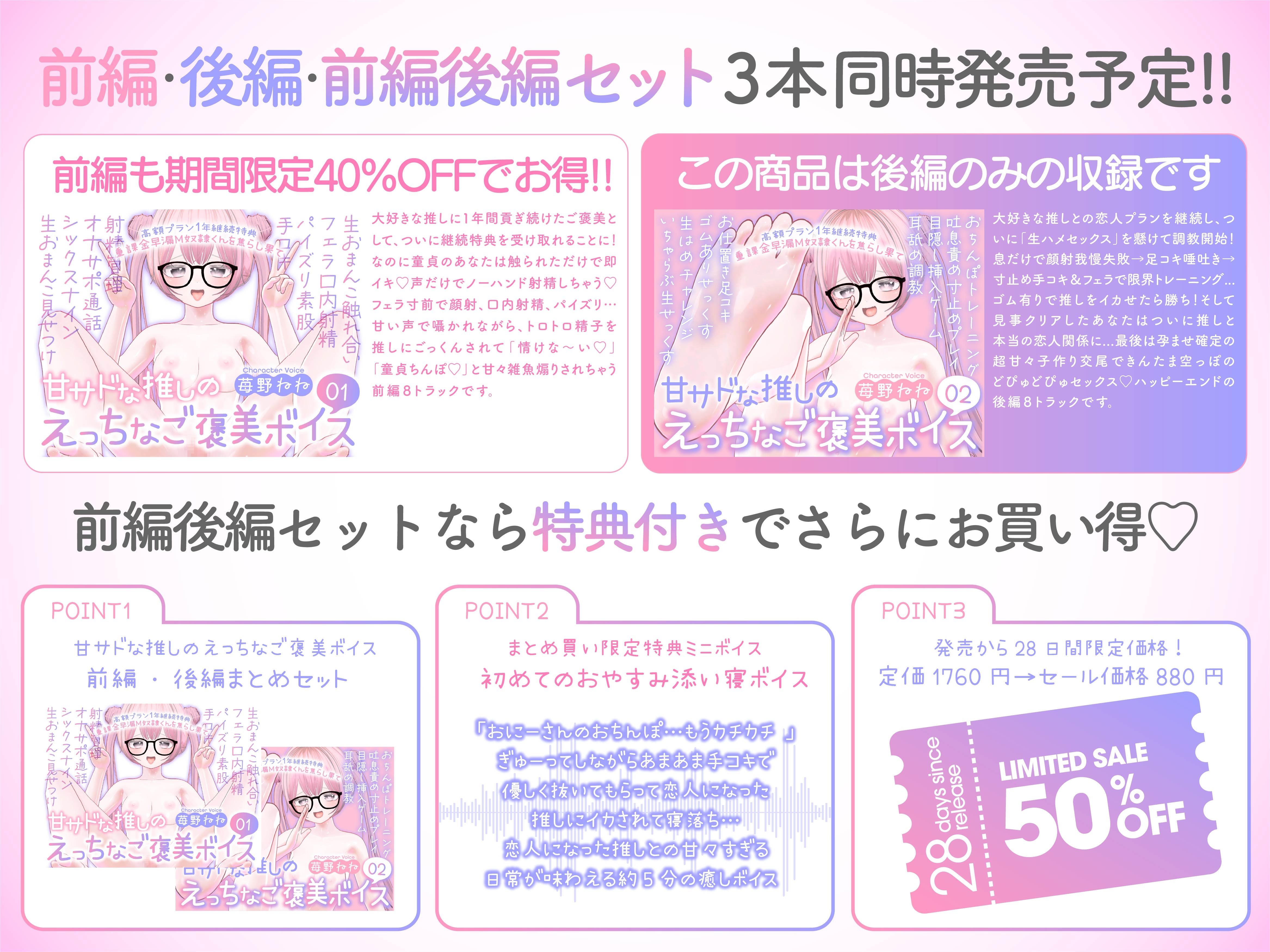 ![~後編単品~恋人プラン1年継続特典 重課金早漏M奴○くんを焦らし果て 甘サドな推しのえっちなご褒美ボイス [ねねプロダクション] ~後編単品~恋人プラン1年継続特典 重課金早漏M奴○くんを焦らし果て 甘サドな推しのえっちなご褒美ボイス [ねねプロダクション]](http://img.dlsite.jp/modpub/images2/parts/RJ01521000/RJ01520228/0d1921a1c5bf4879ebf45128fe44f5dd.jpg)
